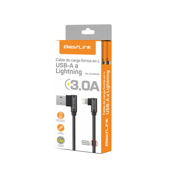 Cable de carga USB-A a Lightning 3.0A Trenzado en L / Mod. BL-CHCBG30