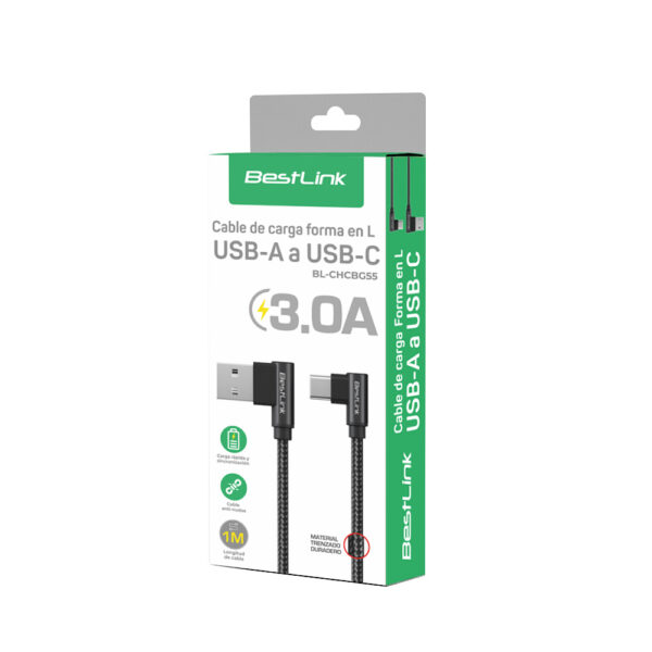 Cable de carga USB-A a USB-C 3.0A Trenzado en L / Mod. BL-CHCBG55