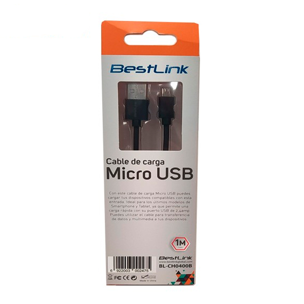 Cable cargador y sincronizador micro USB 1 metro color negro / mod. BL-CH0400