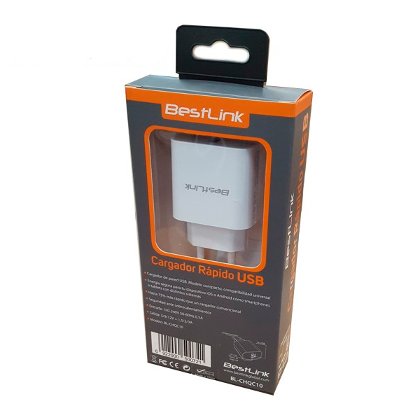 Cargador de pared USB Chipset Qualcomm 3.0 mod. BL-CHQC10 color blanco