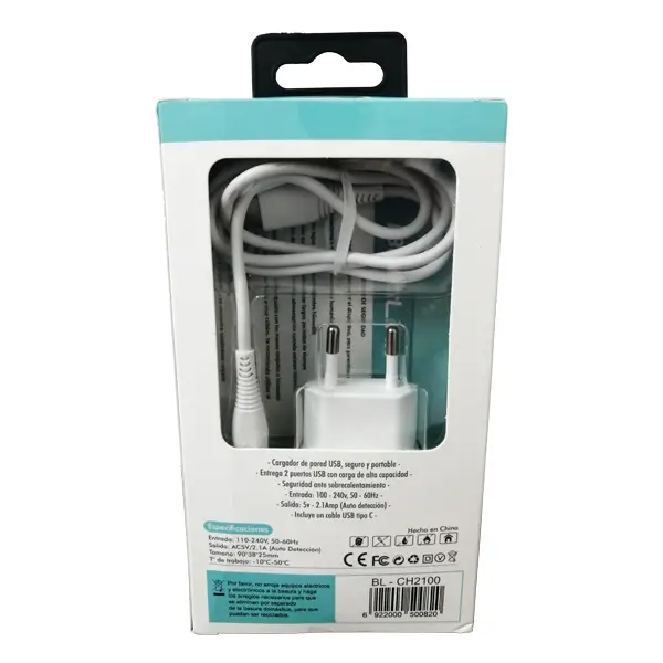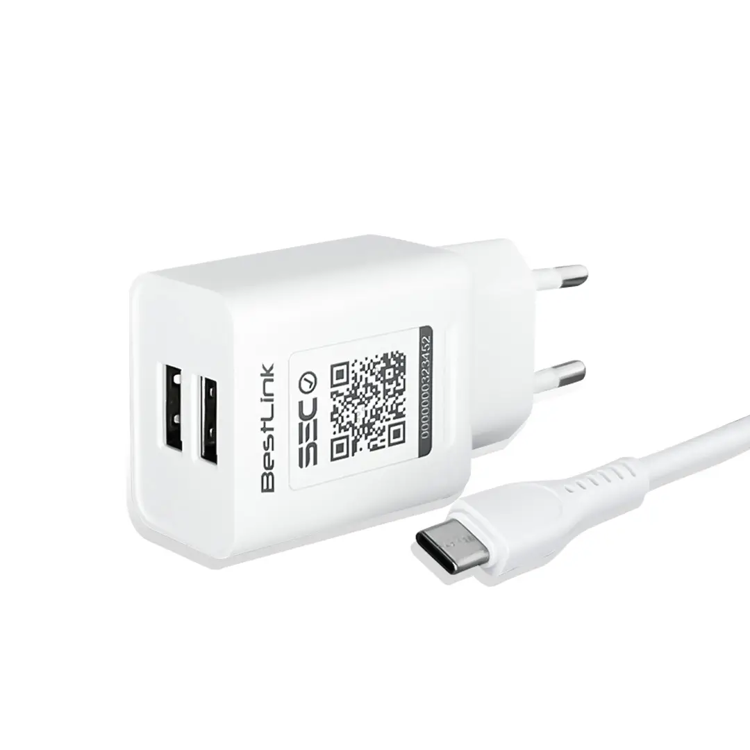 Cargador Dual USB, 2.1amp, color blanco. BESTLINK / mod. BL-CH2100